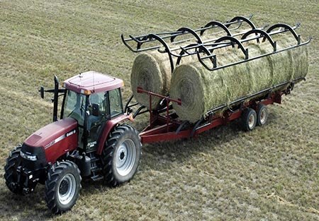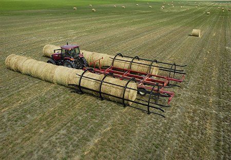 The Bale Cart is designed for farmers and ranchers with large numbers of bales to move. Just like the grain cart, which is a link between your combine and the semi-truck, the Bale Cart is the best link between your baler and the semi-truck. By gathering bales for efficient loading onto a semi-trailer, you can accomplish in hours what it used to take you days to do. The Bale Cart allows you to gather and set up to 1,000 bales per day into semi load groups. And once you have them in groups, it takes less than 10 minutes to load the bales tube-style onto a semi-trailer. In this fashion, one person can easily gather and move up to 120 bales per hour. This is what you can do with the Bale Cart