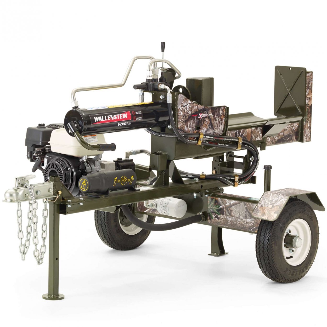 Introducing the all new Firebolt WXR740, the first 2x2 speed log splitter that is both faster and stronger. The Firebolt offers 27 tons of splitting force and an impressive 11 second cycle time. Featuring a 2-stage regenerative valve for blazing fast speed, coupled with a heavier 2-speed pump for extra power, the Firebolt offers the perfect combination of fast, efficient splitting with added strength when you need it.